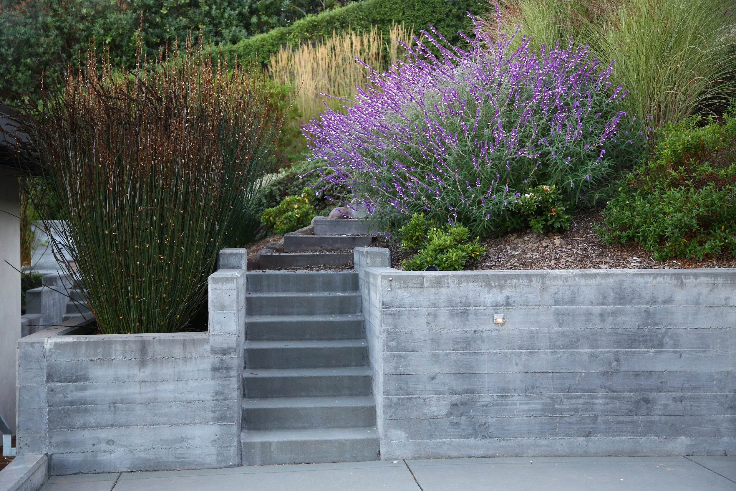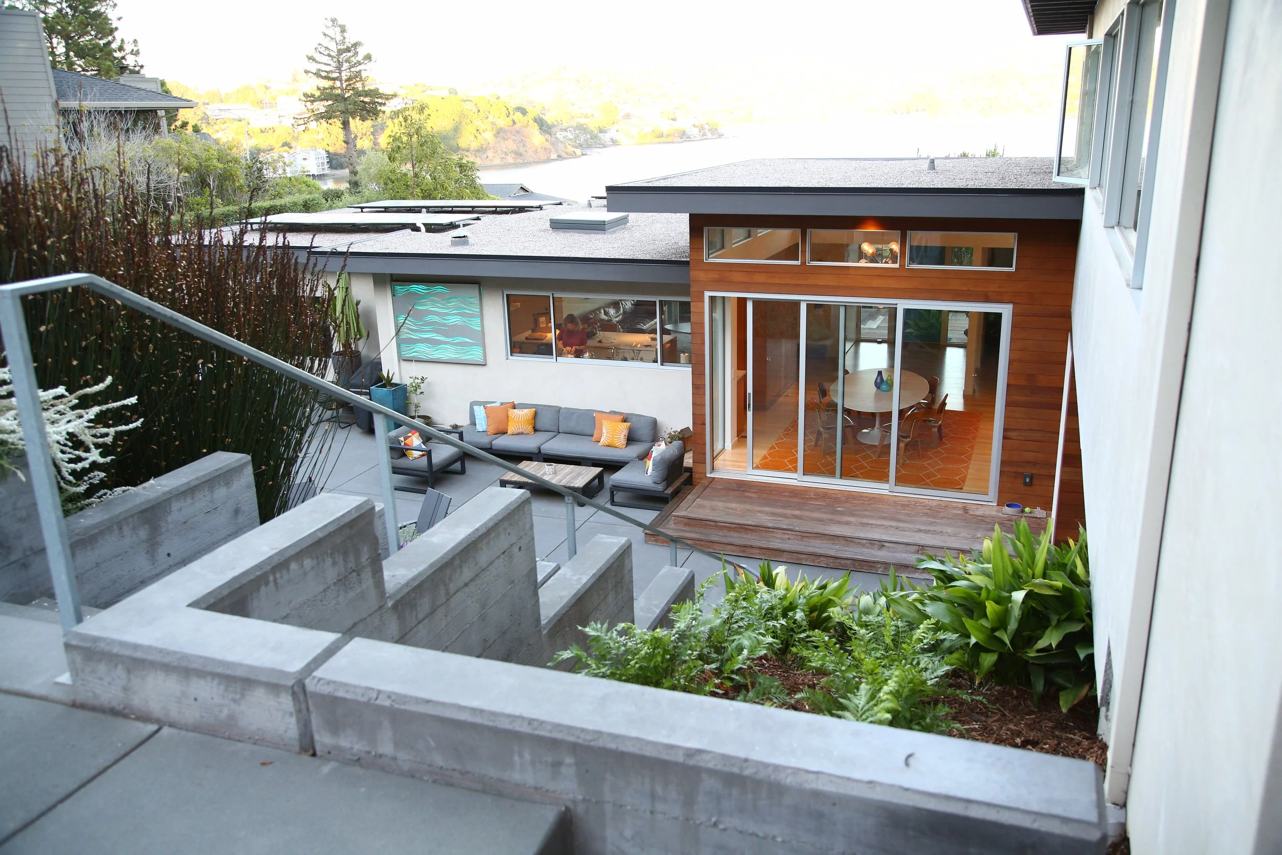 Tucked into the hillside, this modern garden offers a series of terraced outdoor experiences for family enjoyment. Complimenting the architecture and oriented toward sweeping views of San Francisco, each terrace provides a unique perspective of the property.